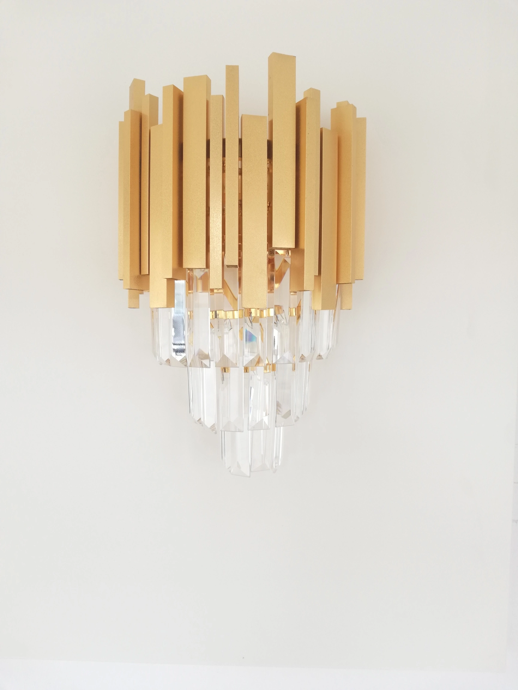 Απλίκα τοίχου με κρύσταλλα Gold. Διαθέτει 3 σειρές από κρύσταλλα και συνολικά 24 κρύσταλλα με ποιότητα Κ9 και διαστάσεις κάθε κρυστάλλου 100mmx22mm. Είναι ιδανικό για να διακοσμήσετε τον χώρο σας και να δώσετε ένα διαφορετικό στυλ.