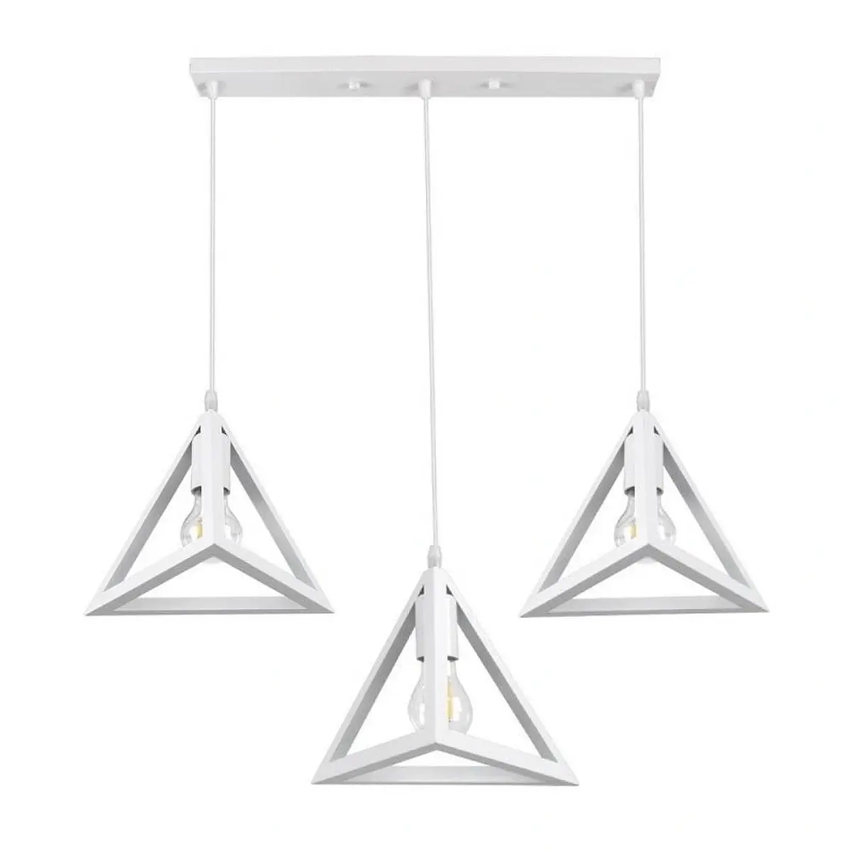 Κρεμαστό φωτιστικό σε λευκό χρώμα τρίγωνο. Το φωτιστικό αυτό είναι ιδανικό για τοποθέτηση σε σαλόνι ή δωμάτιο σπιτιού, σε μπαρ κτλ. Έχει ωραίο design και το χρώμα είναι λευκό