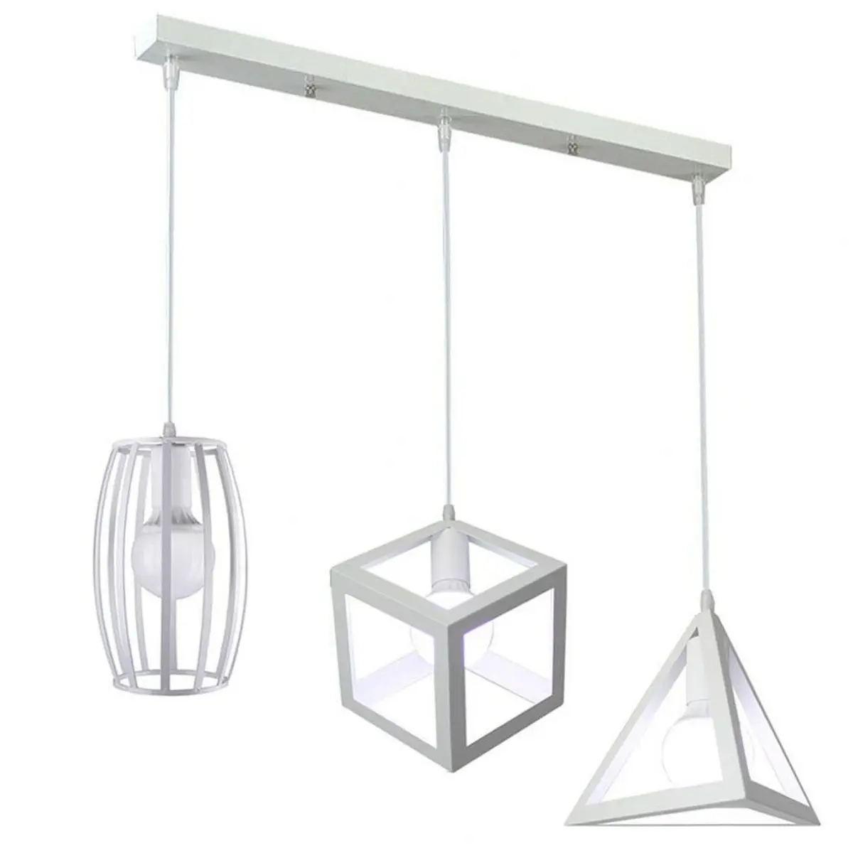 Κρεμαστό φωτιστικό οροφής τριπλό με γεωμετρικά σχήματα λευκό E27 R80 RICO8Κρεμαστό φωτιστικό οροφής τριπλό με γεωμετρικά σχήματα λευκό E27 R80 RICO8