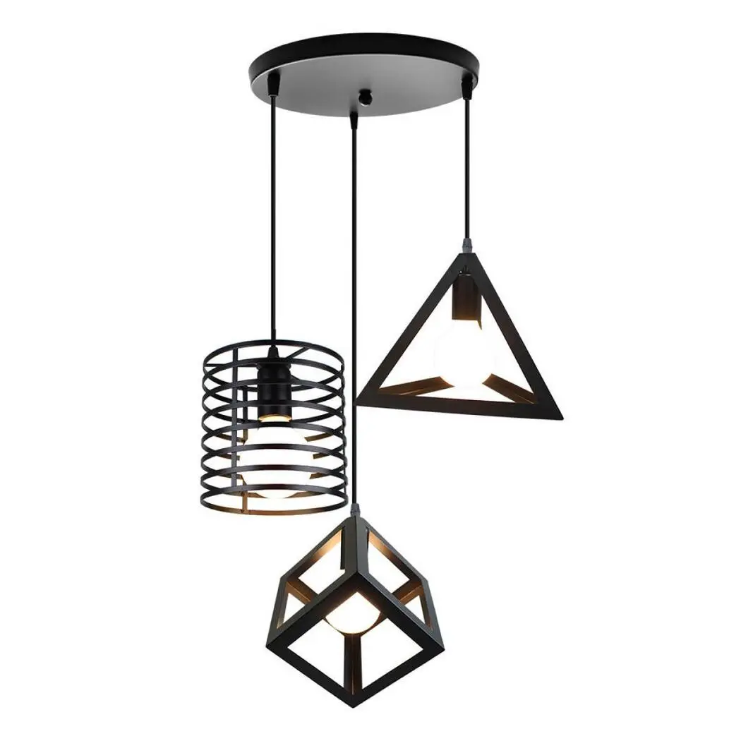 Τριπλό κρεμαστό φωτιστικό με γεωμετρικά σχήματα (01600311). Μπορεί να χρησιμοποιηθεί σε οποιονδήποτε χώρο, ενώ το εντυπωσιακό του design θα δώσει μια νέα όμορφη εμπειρία στον χώρo σας.