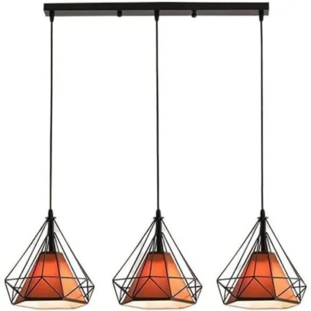 Χαρακτηριστικά από κρεμαστό φωτιστικό οροφής τριπλό σε σχήμα διαμαντιού 25cm με καφέ κάλυμμα σε ευθεία R50 REKTO3B250