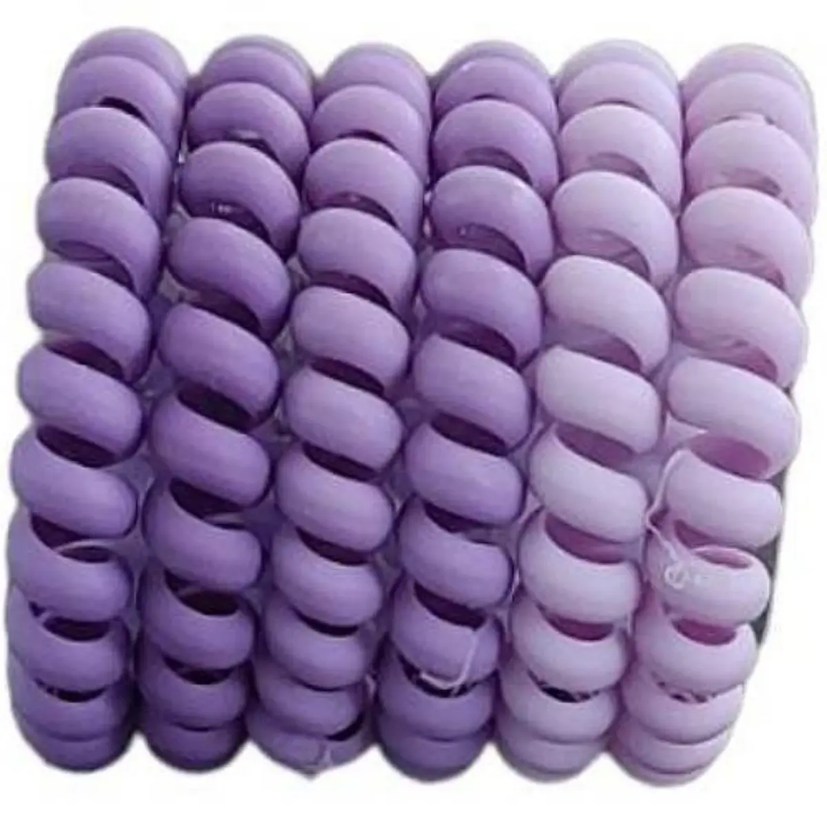 Λαστιχάκια μαλλιών σετ 6 τεμαχίων του stimeno από σκούρο μωβ προς το ανοιχτό μωβ χρώμα. Τα λαστιχάκια του stimeno μειώνουν σημαντικά το σπάσιμο των μαλλιών και την εμφάνιση ψαλίδας. Επίσης, αποτρέπουν το επίπονο τράβηγμα στις ρίζες των μαλλιών, που προκαλούν πονοκέφαλο. Τα μαλλιά δεν είναι μπερδεμένα όταν αφεθούν. Είναι αδιάβροχα και αντέχουν στο νερό και στον ιδρώτα. Είναι κατάλληλα για κάθε τύπο μαλλιών.
