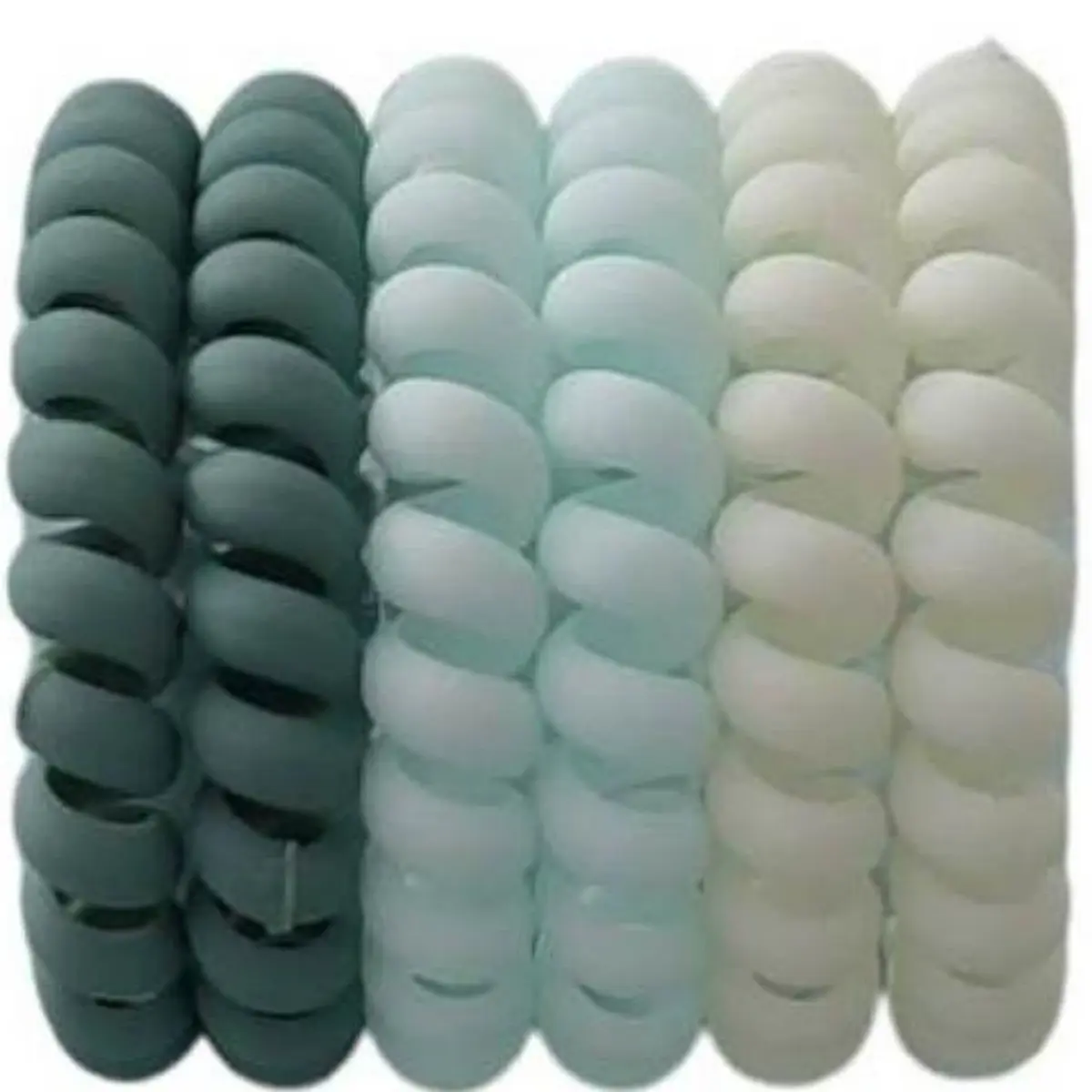 Λαστιχάκια μαλλιών σετ 6 τεμαχίων του stimeno από λευκό του πάγου προς το γκρι χρώμα. Τα λαστιχάκια του stimeno μειώνουν σημαντικά το σπάσιμο των μαλλιών και την εμφάνιση ψαλίδας. Επίσης, αποτρέπουν το επίπονο τράβηγμα στις ρίζες των μαλλιών, που προκαλούν πονοκέφαλο. Τα μαλλιά δεν είναι μπερδεμένα όταν αφεθούν. Είναι αδιάβροχα και αντέχουν στο νερό και στον ιδρώτα. Είναι κατάλληλα για κάθε τύπο μαλλιών.