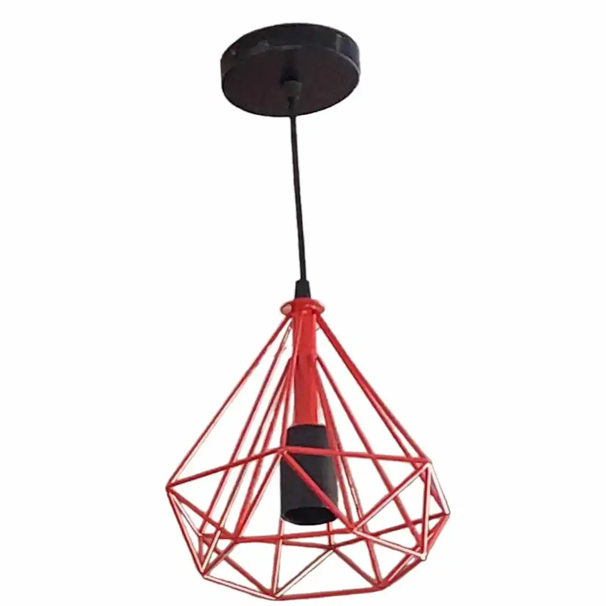 Το κρεμαστό φωτιστικό οροφής σχήματος διαμάντι σε κόκκινο χρώμα δίνει μια πολύ ωραία αισθητική στον χώρο.