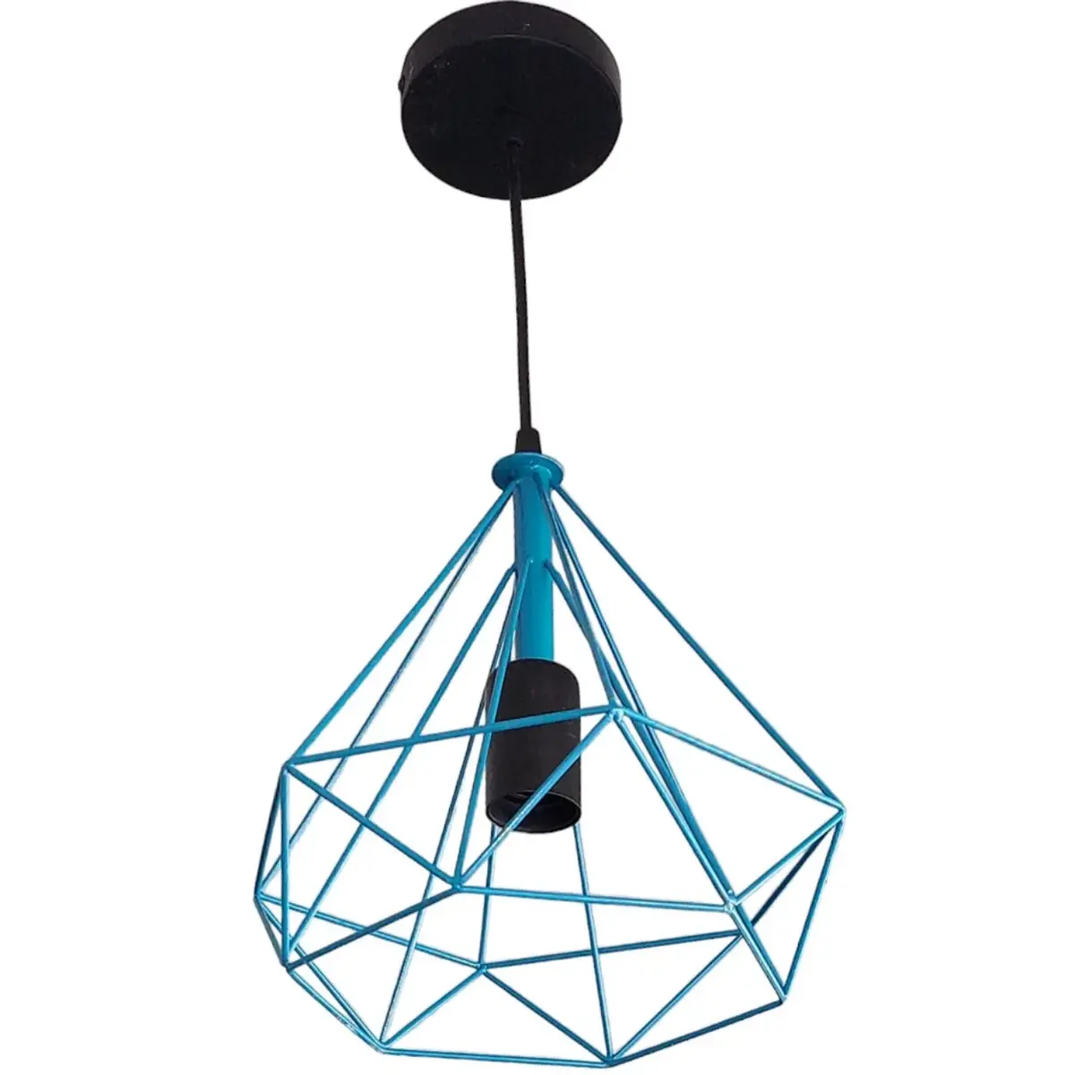 Το κρεμαστό φωτιστικό οροφής σχήματος διαμάντι σε μπλε χρώμα δίνει μια πολύ ωραία αισθητική στον χώρο.