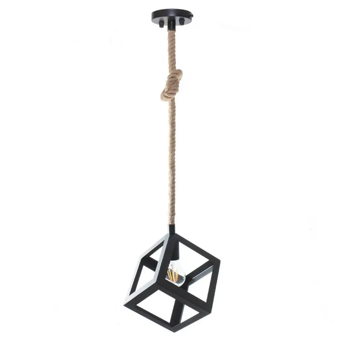 Κρεμαστό φωτιστικό Οροφής Μαύρο Τετράγωνο Ρόμβος Mε Καλώδιο Σχοινί E27 C10 CUBIO 6