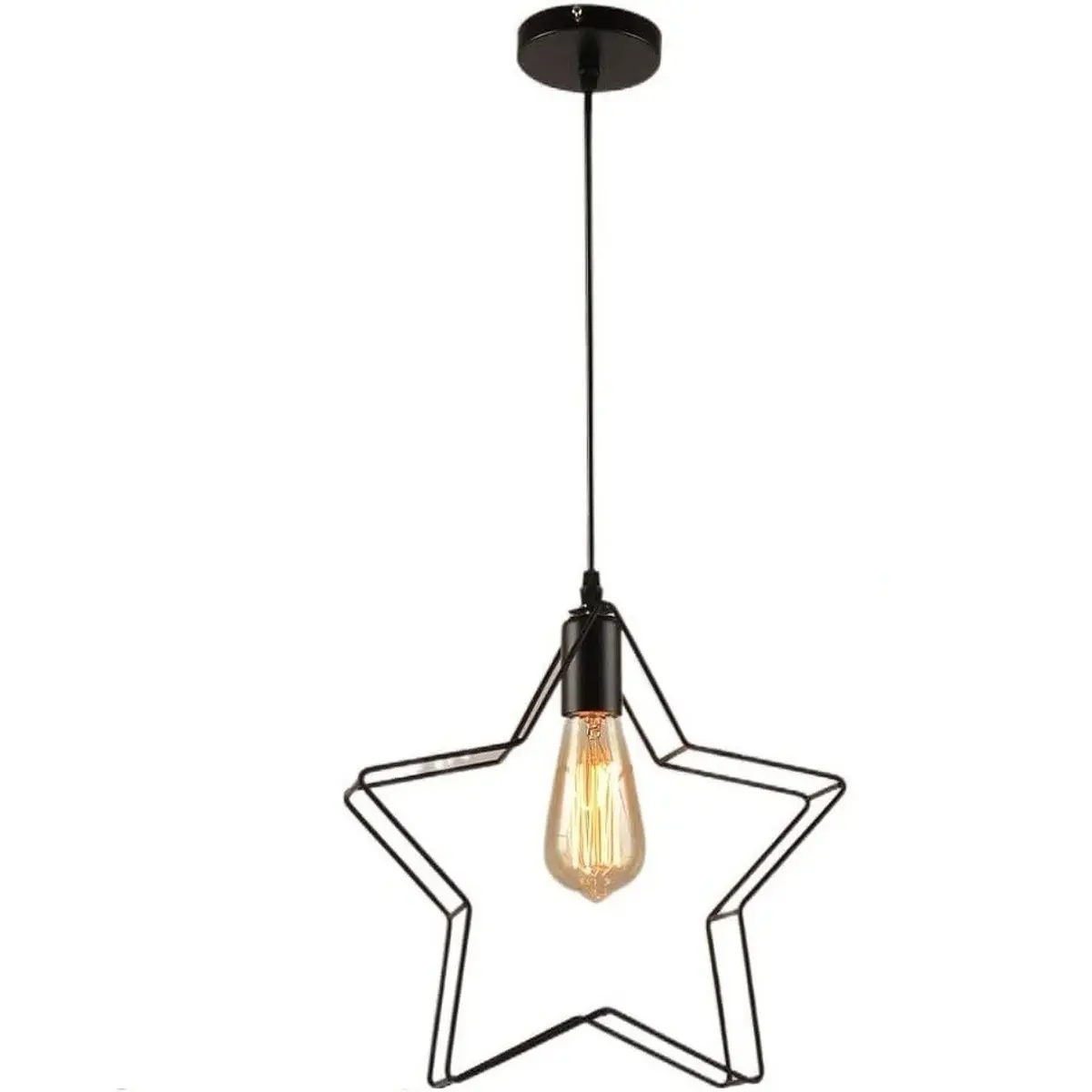 Κρεμαστό φωτιστικό μονό σε μαύρο χρώμα σχήματος αστέρι STAR1. Το φωτιστικό αυτό είναι ιδανικό για τοποθέτηση σε σαλόνι ή δωμάτιο σπιτιού, σε μπαρ κτλ. Έχει ωραίο design και το χρώμα είναι μαύρο