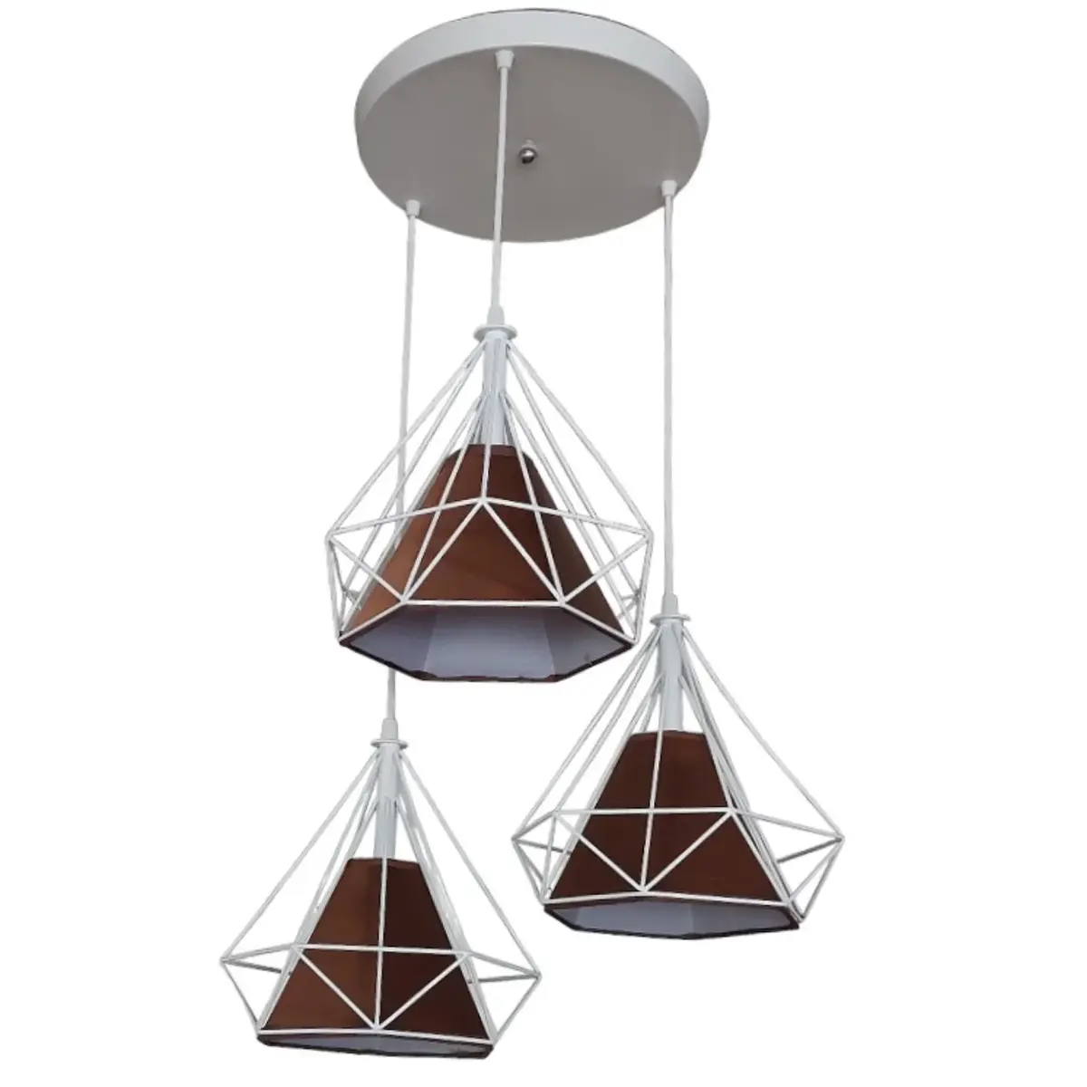 Κρεμαστό φωτιστικό οροφής τριπλό σε σχήμα διαμαντιού με καφέ κάλυμμα (01800230).