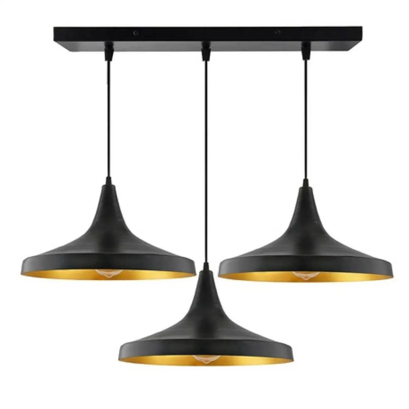 Κρεμαστό φωτιστικό οροφής τριπλό μαύρο εξωτερικά και χρυσό χρώμα εσωτερικά Ε27 R50 REKTO3AΚρεμαστό φωτιστικό οροφής τριπλό μαύρο εξωτερικά και χρυσό χρώμα εσωτερικά Ε27 R50 REKTO3A