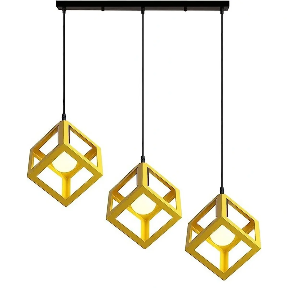Φωτιστικό κρεμαστό τρίφωτο τετράγωνο κύβος μεταλλικό σε κίτρινο χρώμα με μαύρη ροζέτα (00500870). Έχει ένα ιδιαίτερο φωτιστικό σε vintage σχεδιασμό που θα εντυπωσιάσει και είναι ιδανικό για να διακοσμήσετε το χώρο σας και να δώσετε μια διαφορετική άποψη. Μπορεί να χρησιμοποιηθεί σε σαλόνι, κουζίνα, δωμάτιο, καφέ, μπαρ, εστιατόρια