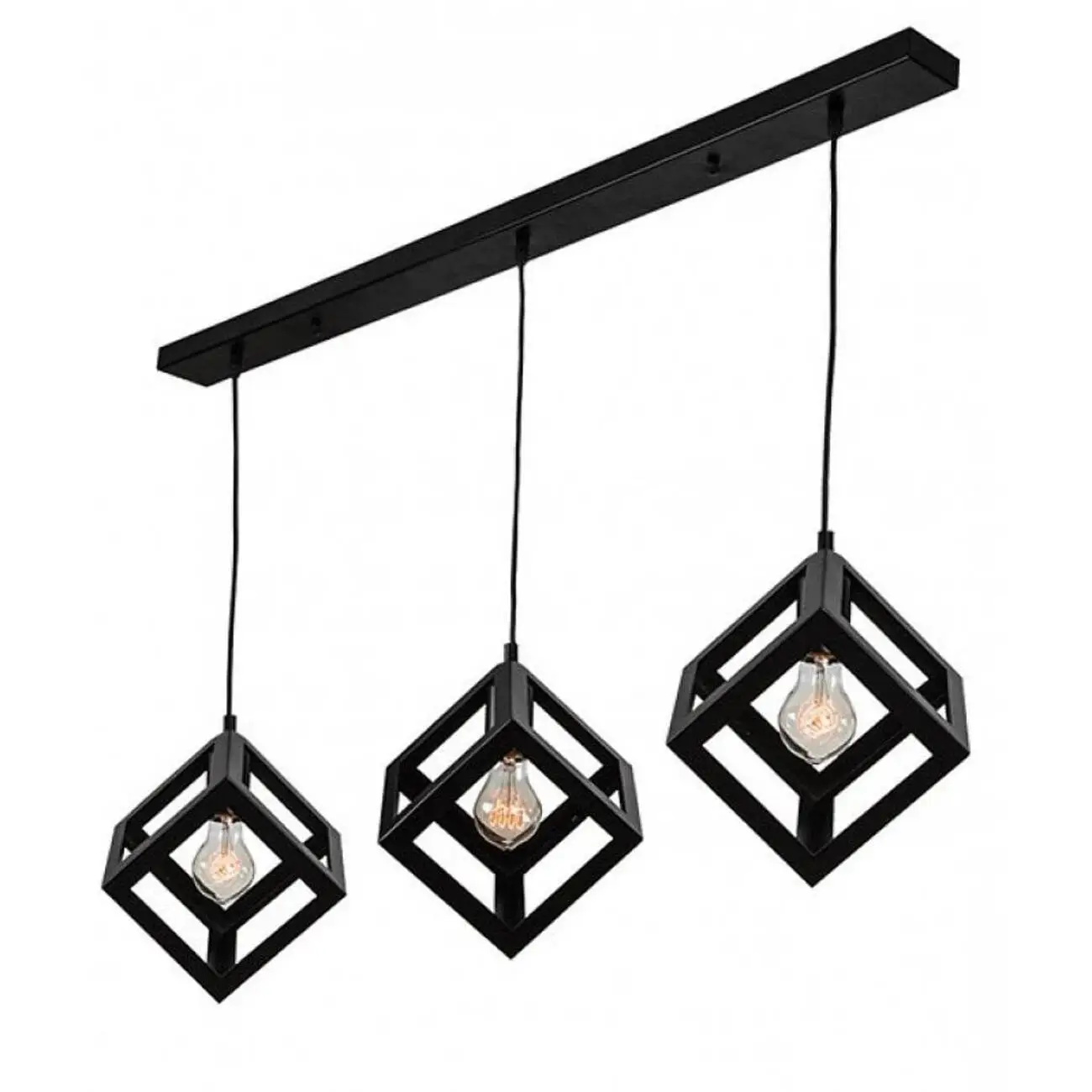 Φωτιστικό κρεμαστό τρίφωτο τετράγωνο μεταλλικό μαύρο χρώμα (00500600).