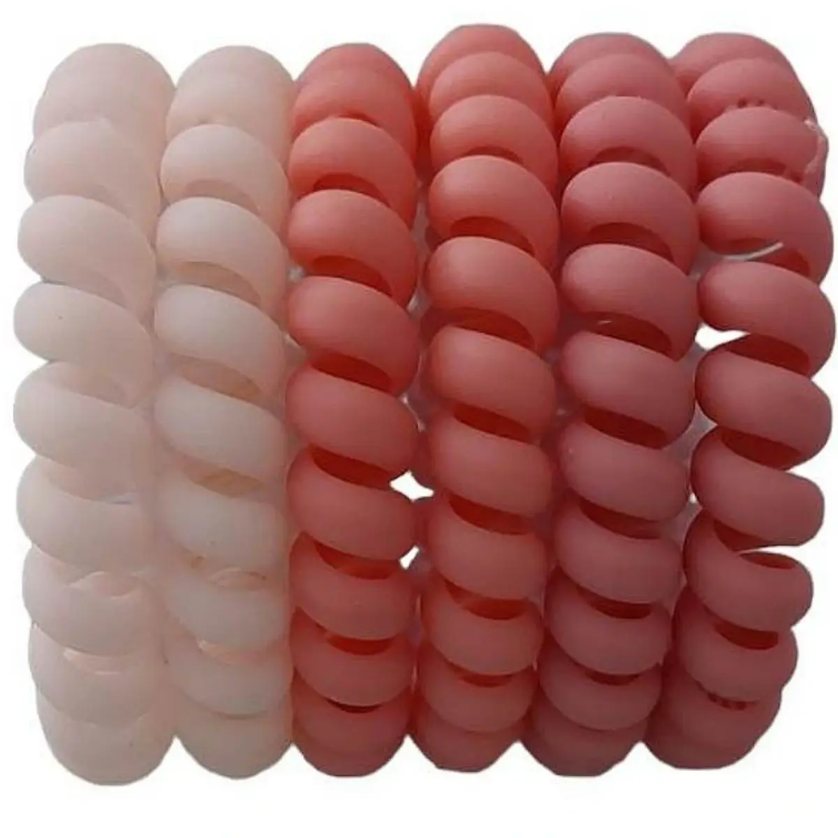 Λαστιχάκια μαλλιών σετ 6 τεμαχίων του stimeno από ροζ προς το λευκό χρώμα. Τα λαστιχάκια του stimeno μειώνουν σημαντικά το σπάσιμο των μαλλιών και την εμφάνιση ψαλίδας. Επίσης, αποτρέπουν το επίπονο τράβηγμα στις ρίζες των μαλλιών, που προκαλούν πονοκέφαλο. Τα μαλλιά δεν είναι μπερδεμένα όταν αφεθούν. Είναι αδιάβροχα και αντέχουν στο νερό και στον ιδρώτα. Είναι κατάλληλα για κάθε τύπο μαλλιών.