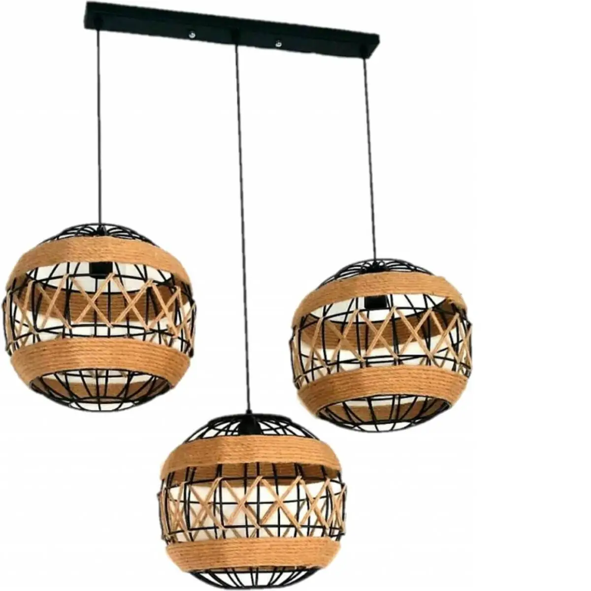 Χαρακτηριστικά από φωτιστικό κρεμαστό οροφής τριπλό σε σχήμα μπάλας σε μαύρο χρώμα και σκοινί σε φυσικό χρώμα R60 ROBOLIA3: